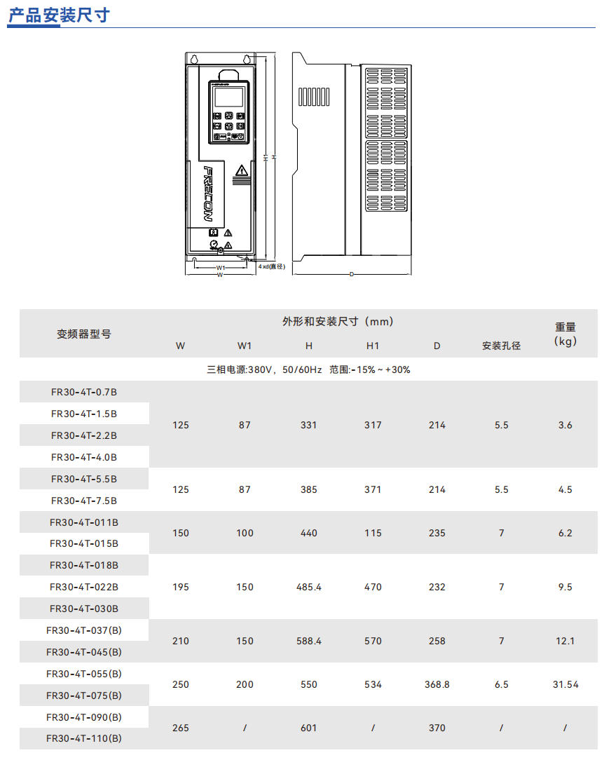高启动转矩特性: 0.5Hz可提供150%的启动转矩(无PG矢量控制1) 0.25Hz 可提供150%的启动转矩(无PG矢量控制2)
