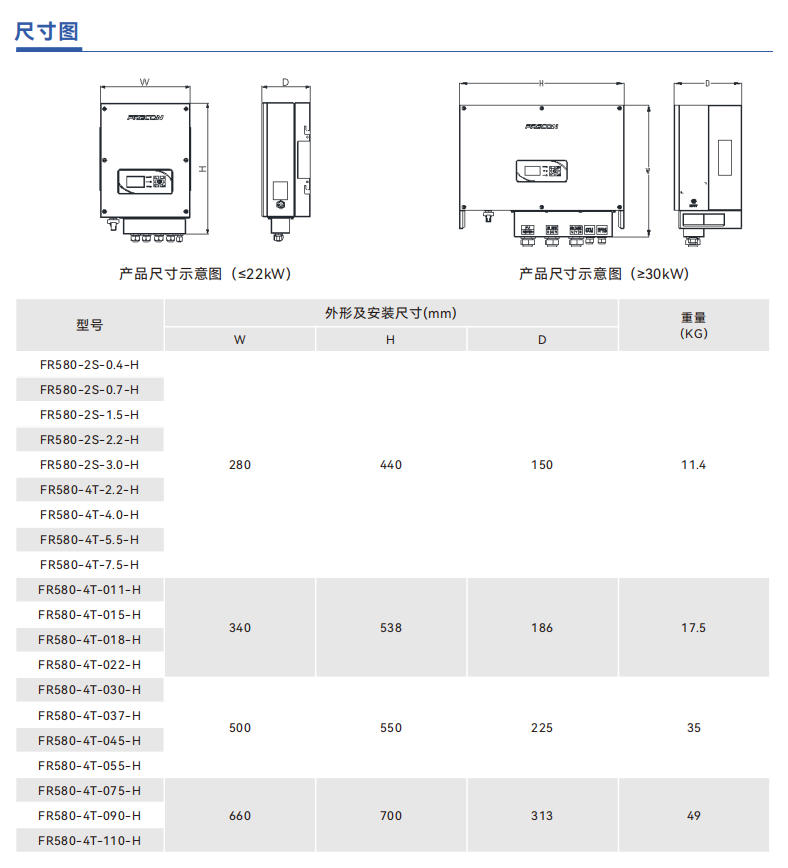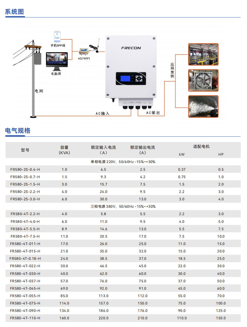 产品特点 IP65设计,高防护等级户外安装机型采用自然冷却方式,低噪音(7.5KW以下功率)广泛应用于各种交流异步电机,同步电机,磁阻电机GPRS远程监控实时运行状态,实时启停(可选)运行环境温度范围:-25℃~60℃具有完善的过电流、过电压、输出缺相保护、短路、过热等保护功能