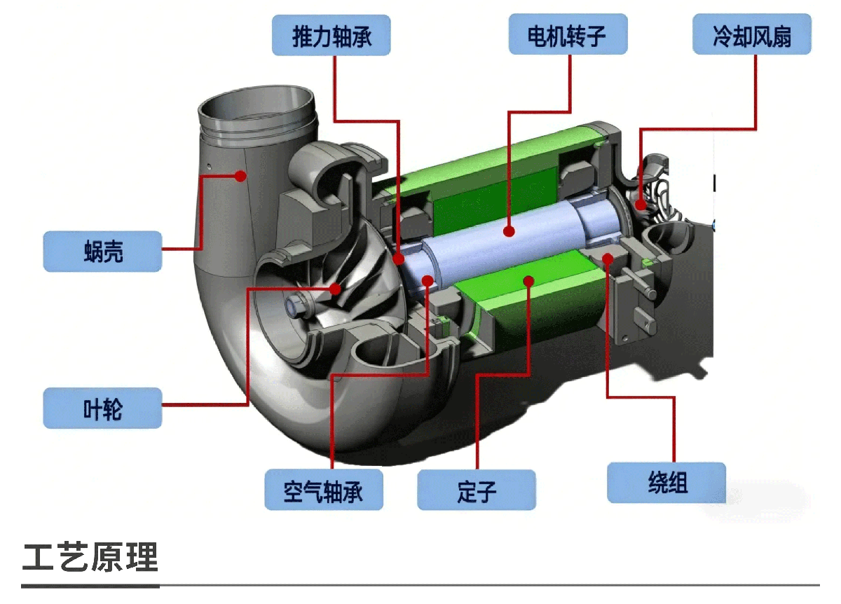 空气悬浮离心鼓风机的核心在于空气悬浮轴承技术: